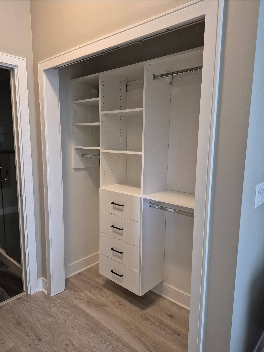 A custom closet design focuses on your specific routine and wardrobe. We ensure that the layout meets your needs. Whether that means more drawers, jewelry storage, adjustable shelving, or specialty compartments, a tailored system makes everyday organization far more functional.