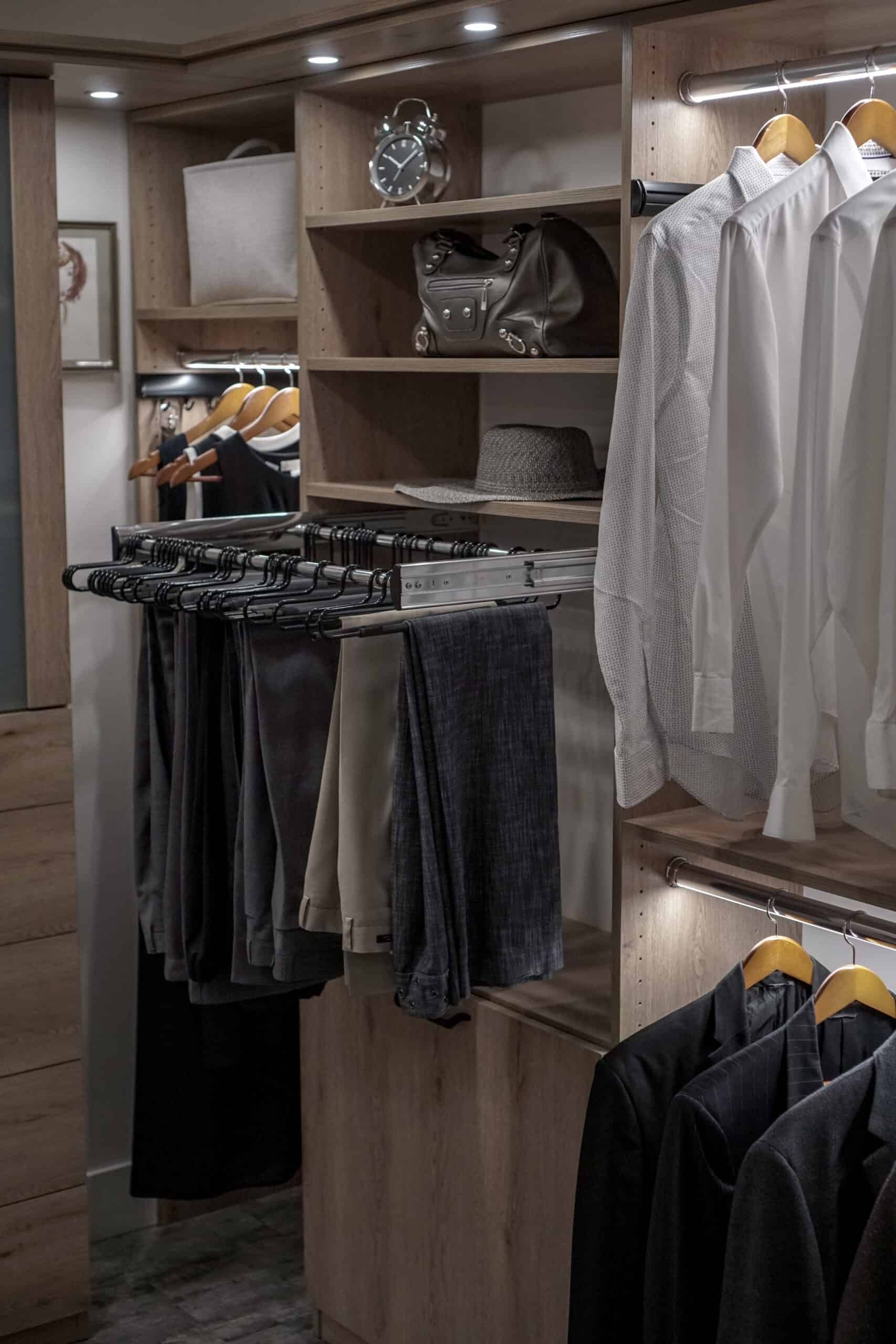 One of the hidden benefits of a custom wardrobe system is visibility. When clothing is no longer crowded, buried or packed away, you gain a clearer view of what you own.Â